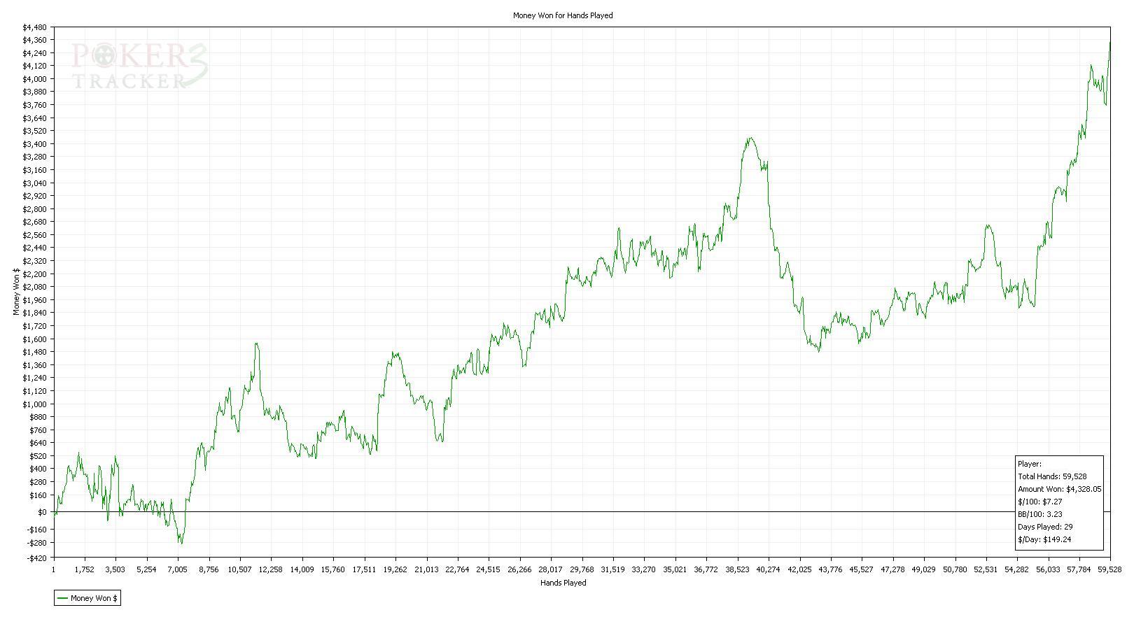 I didnt know I managed to play 60k hands so I am happy with that. The past 2 weeks hasnt been that productive though.