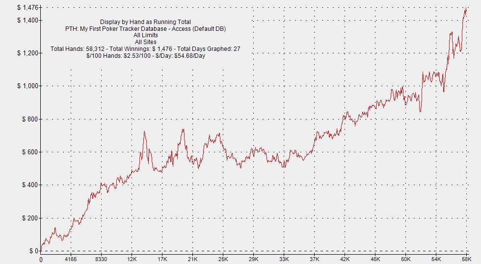 Heres the graph since January 1st I think its missing about 5-6k hands where I won like $200 or so.