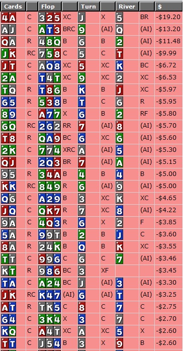 So I finally got mo money to invest in this crazy poker scheme I have of going pro. I took a quick 5 BI shot at NL50 HU for no other reason than just to see if I could. Well I cant, so enough of that story. Before I juice the poker economy any further I decided to sit down and watch some poker sessions via the HEM replayer. Not just partial sessions, entire sessions from start to finish, every single hand. It's basically like watching a video of yourself really. So I'm watching my pwning sessions, and my losing one's too, to try and see whats happening with me.
