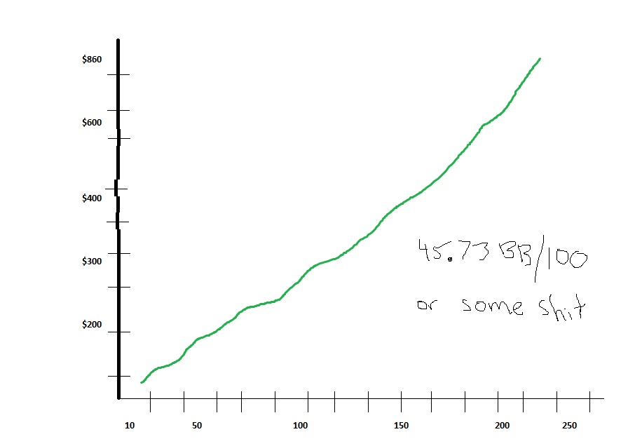 I caught myself last night doing the same dumb shit I always do that costs me money. So I adjusted. I tried something different, to get different results. YAY IM NOT WETARDED! Tonight was night 2 of "pummel the fish with real hands" night. Since I dont know how to make graphs of live play I'll do my best to photoshop one.