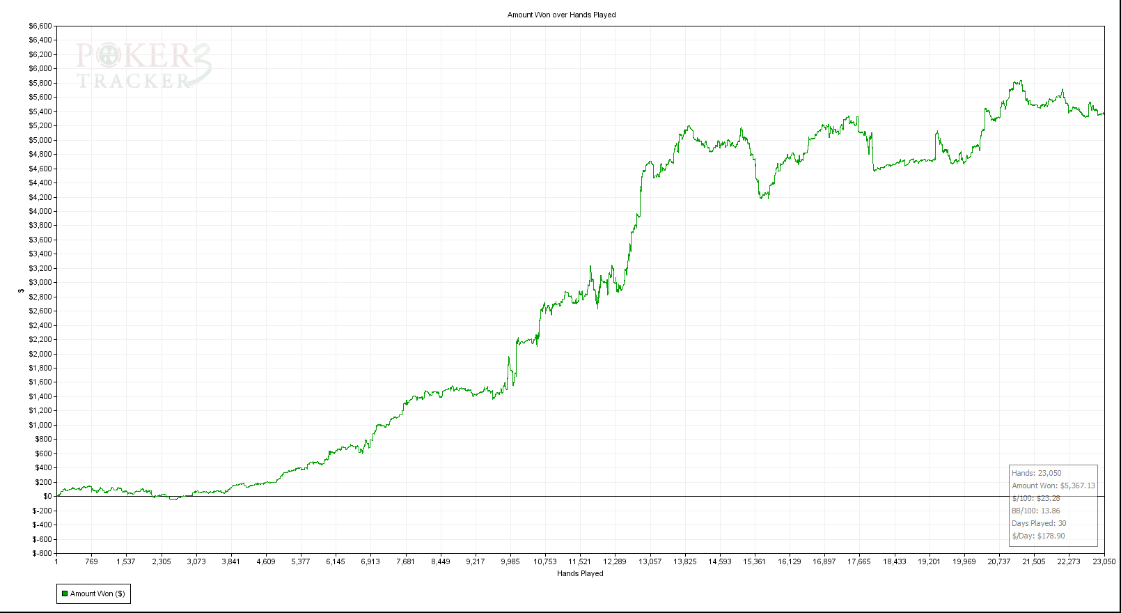 What's up all, this month was ez breezy, didn't play that much due to being a slave to my government(Marine Corps) but this month was successful non-the-less. I love FTP but more specifically RUSH. Myself and a buddy(Syntax on LP) started studying poker in more depth and are learning a ton. You learn exponentially faster with somebody at your skill set or better watching you play/talking about hands that go on. It's probably the most +EV thing a Online poker player can do, besides invest in PT3/HEM