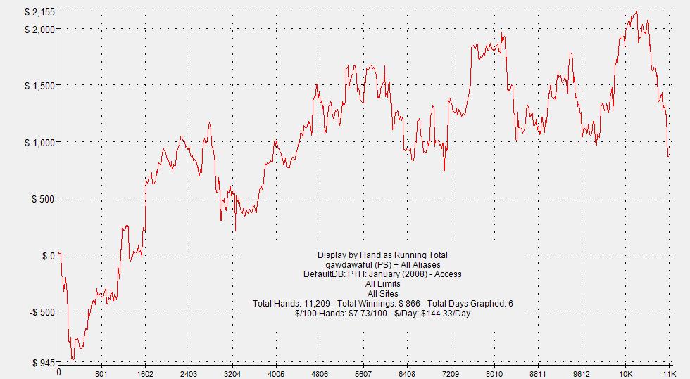 A little about my poker background. I suck. I'm not that smart either. Fuck, in fact, I'm one of the dumbest people you'll ever meet. But if I can make it, so can you. I spent a shit ton of time grinding 50 and 100NL because I cash out fairly regularly. Life time, I'm probably a 4bb winner at 50NL, 3bb winner at 100NL and 2bb winner at 200NL. /endwhore  |