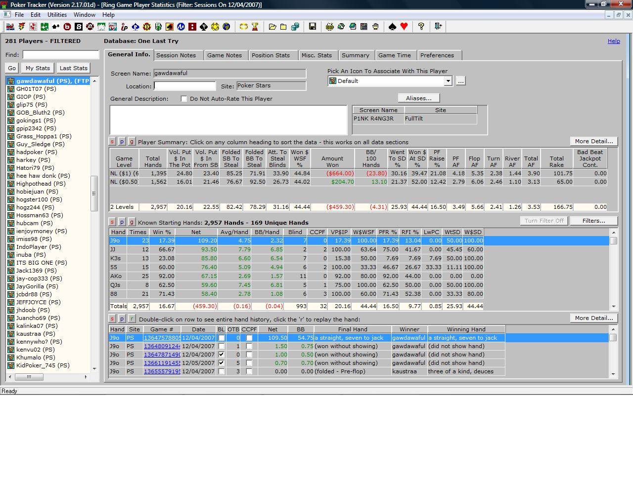 Any feed back on my stats? I actually ran $6 below expectation in all ins, so I guess I was just hitting loads of set ups like bitches getting krablar owned like this http://www.liquidpoker.net/h/329040