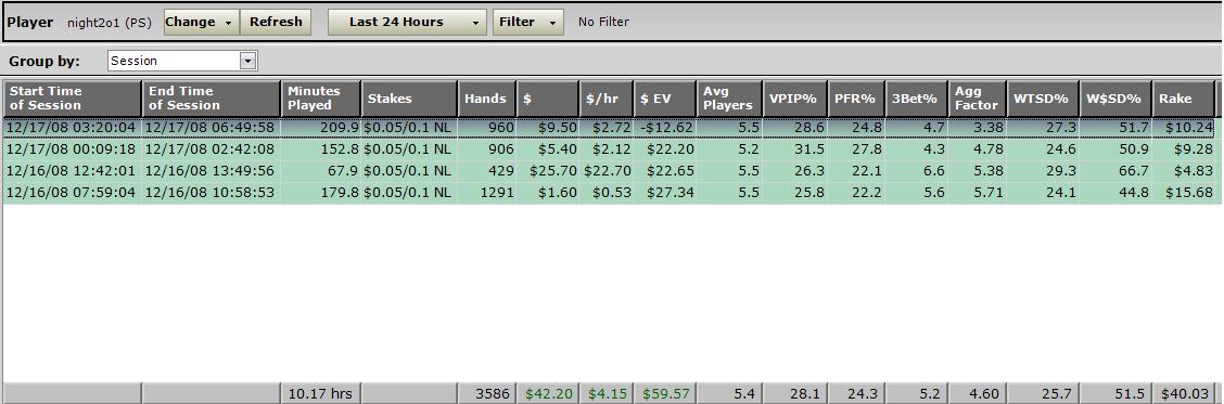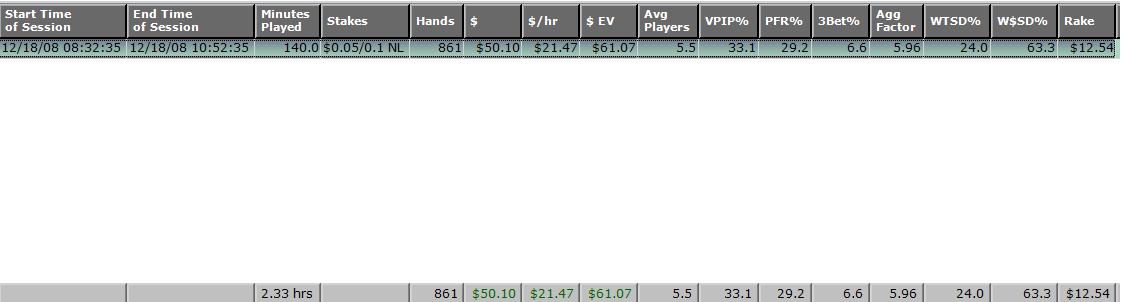 I looked at my session stats and said what the fuck? I might need to tone it down a little bit. Otherwise, I'm still focusing on my postflop play and I think its been a good improvement so far..