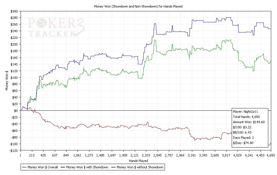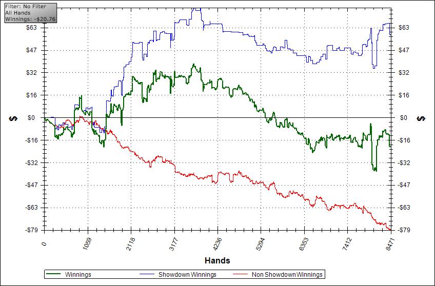 My nonshowdown winnings aren't anywhere near as nice as they were at NL10. I'm not sure why. I will concentrate a bit on good spots to change this up a bit (of course not at the detriment to my overall game, but as an improvement). I am wondering what the average amount people are losing/winning a hand in nonshowdown at NL25 though.. if any of you would oblige. Full ring btw.