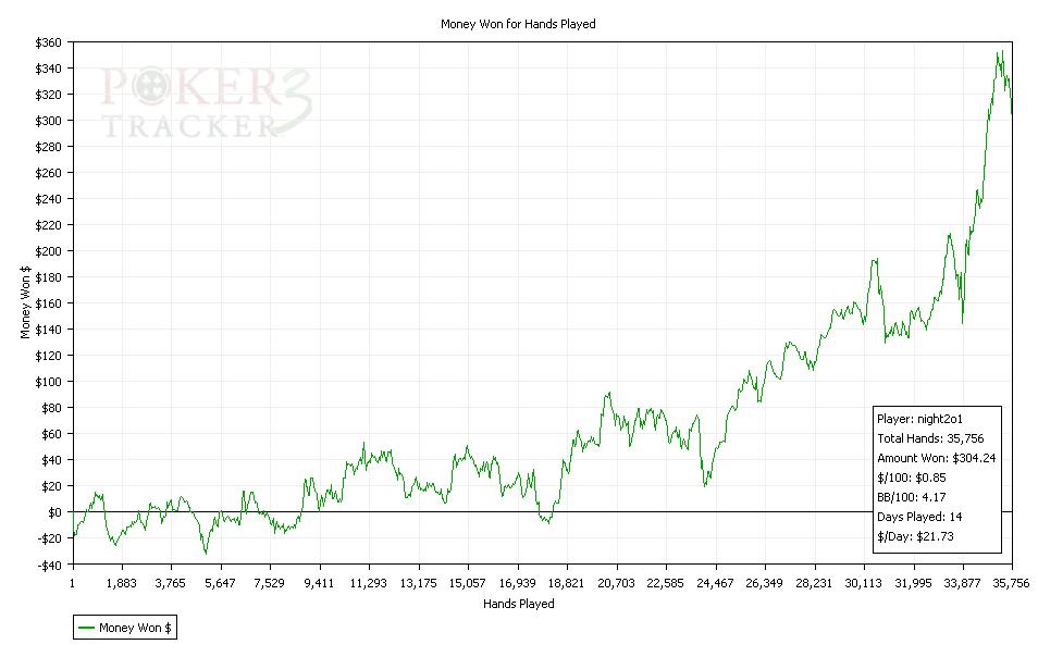 If I am successful and on the way my roll hits $1250 I doubt I'd have the discipline/enough reason to not take a shot at nl50, though. Maybe I'll mix in tables.