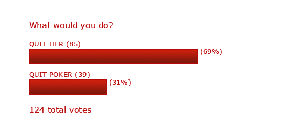 a girl that you LOVE said that she wants you to quit poker otherwise you can't be together anymore, or even if she didn't asked but if you knew that's the only way you can stay together. what would you do?
