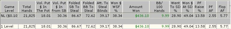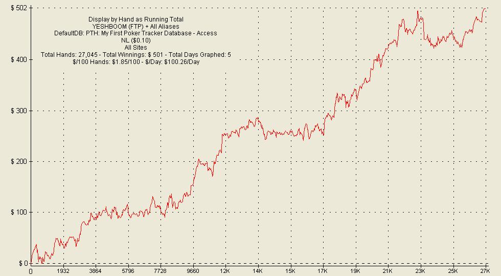 Yeah, I figure since I ought to be able to beat nl10 easily I could crank up the tables and get my roll back to 20BI for nl25, only 50 bucks to go.