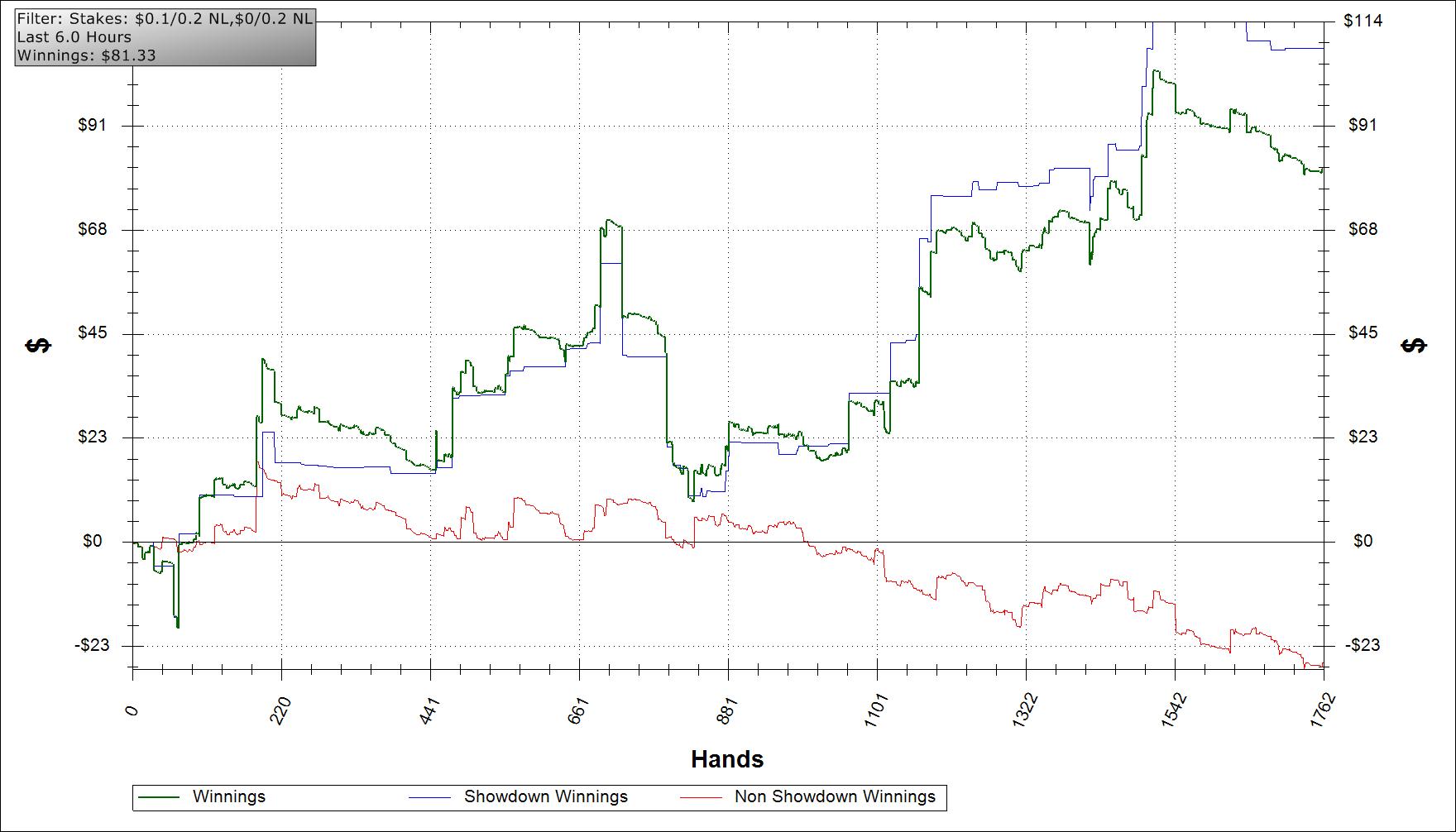 I lost in non-showdown at a much lower rate than usual which is pretty important imo, showing that I am definitely not usually choosing my spots as well. Another strike against bluffing here.