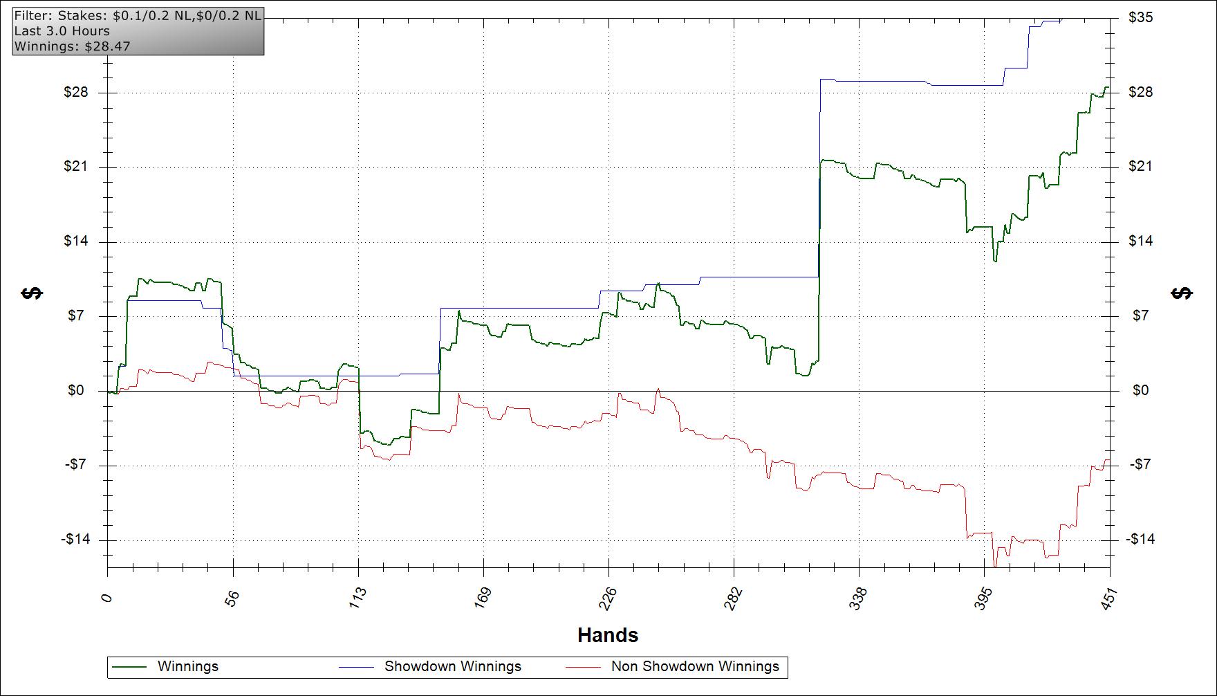 I can't believe how much I'm spewing in nonshowdown. I'm trying to play tag (running 19/16), but all I did was spew everything I won in nonshowdown.